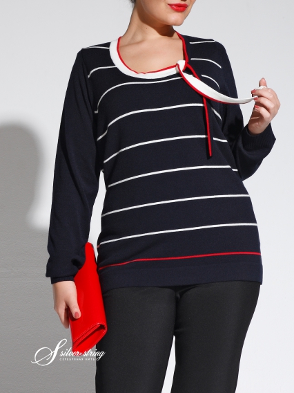 Блузка трикотажная прямая. Рукав длинный. Горловина обработана планкой, которая завязывается в узел,при желании можно сформировать бант.
