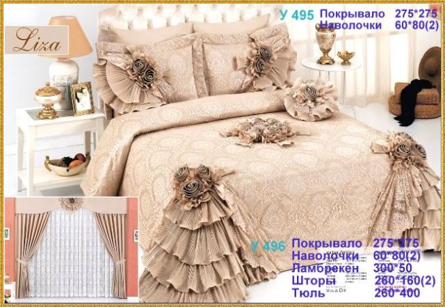 Y 496 LIZA YATAK ORTUSU PERDELI Покрывало "Лиза" евро (с тюл. и штор) 275-275/50-70(2) 12000+%