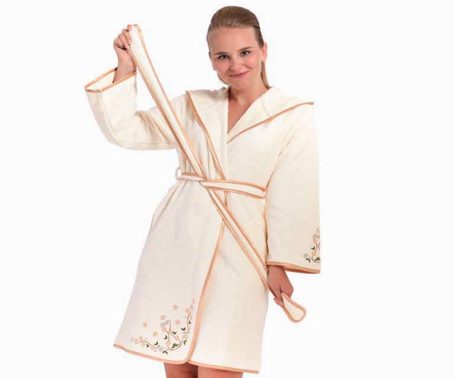 Халат женский "MISS ALISA", состав: хлопок 100% (велюр, махра), размер S M L цвет КРЕМ, арт. MA 025