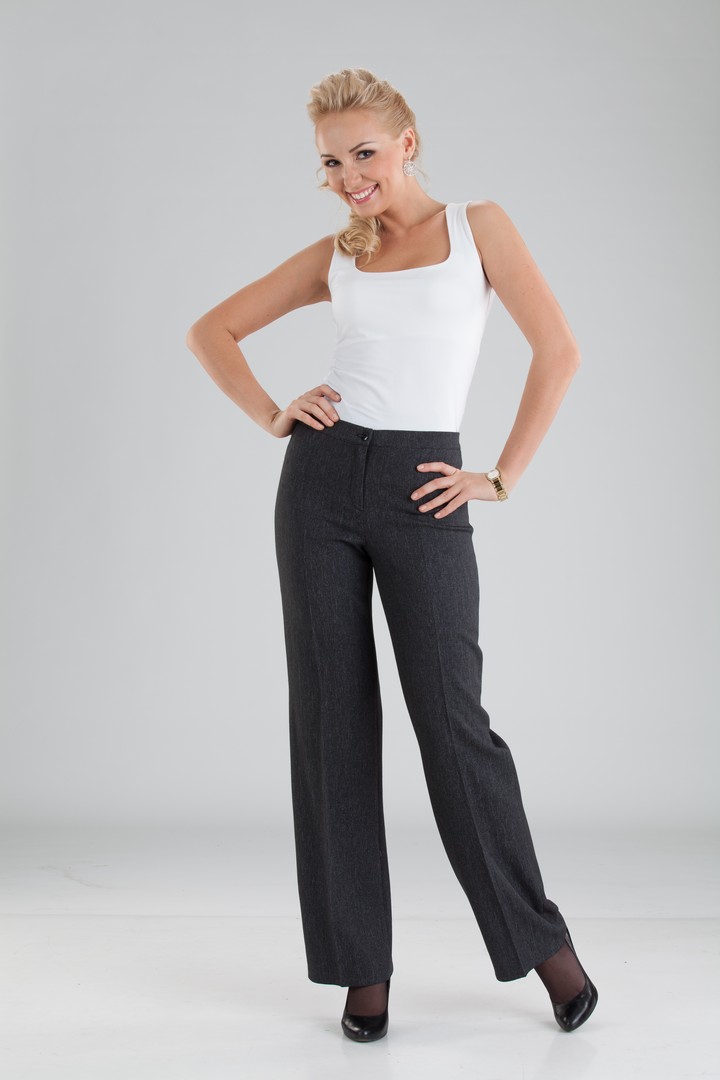 Брюки прямого покроя, верх на поясе, сбоку на резинке, застёжка на молнии с пуговкой.