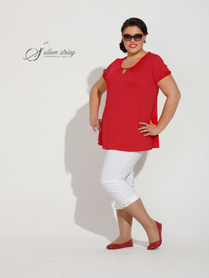 Блуза средней длины, расширенная книзу с круглым вырезом горловины. Впереди на груди и по низу рукава сборка. В зоне декольте декоративное украшение виде капельки. Использован вискозный трикотаж с эластаном, очень мягкий, приятный к телу. За счет разнообразия цветов, легко подбирается ансамбль из нашей летней коллекции.