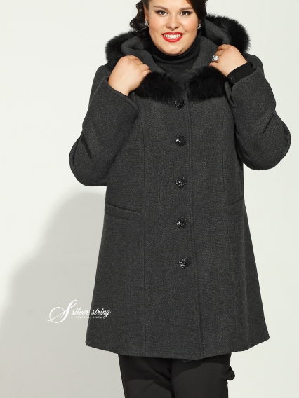 Однобортное полупальто демисезонное , на пуговицах, трапецевидного силуэта длиной до колена, из хорошей шерстяной ткани ( 80%-шерсть, 20%-вискоза) на 100% вискозной "дышащей" подкладке. Объемный капюшон обрамлен пушистым мехом песца, который пристегнут на пуговки. На полочках - горизонтальные карманы с листочками. Рукав втачной, полной длины; внизу - разрезы с закруглением, что, при желании, позволяет отгибать его край. Спинка ровная, без отделки.