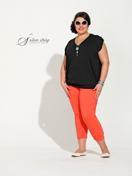 Брюки - дудочки 7/8 из однотонной эластичной ткани с большим содержанием хлопка, с высокой классической посадкой.В боках и по спинке - эластичный пояс, впереди- гульфик. Внизу брючин- застежка на 2 пуговицы. Очень комфортны и в городе и на отдыхе.