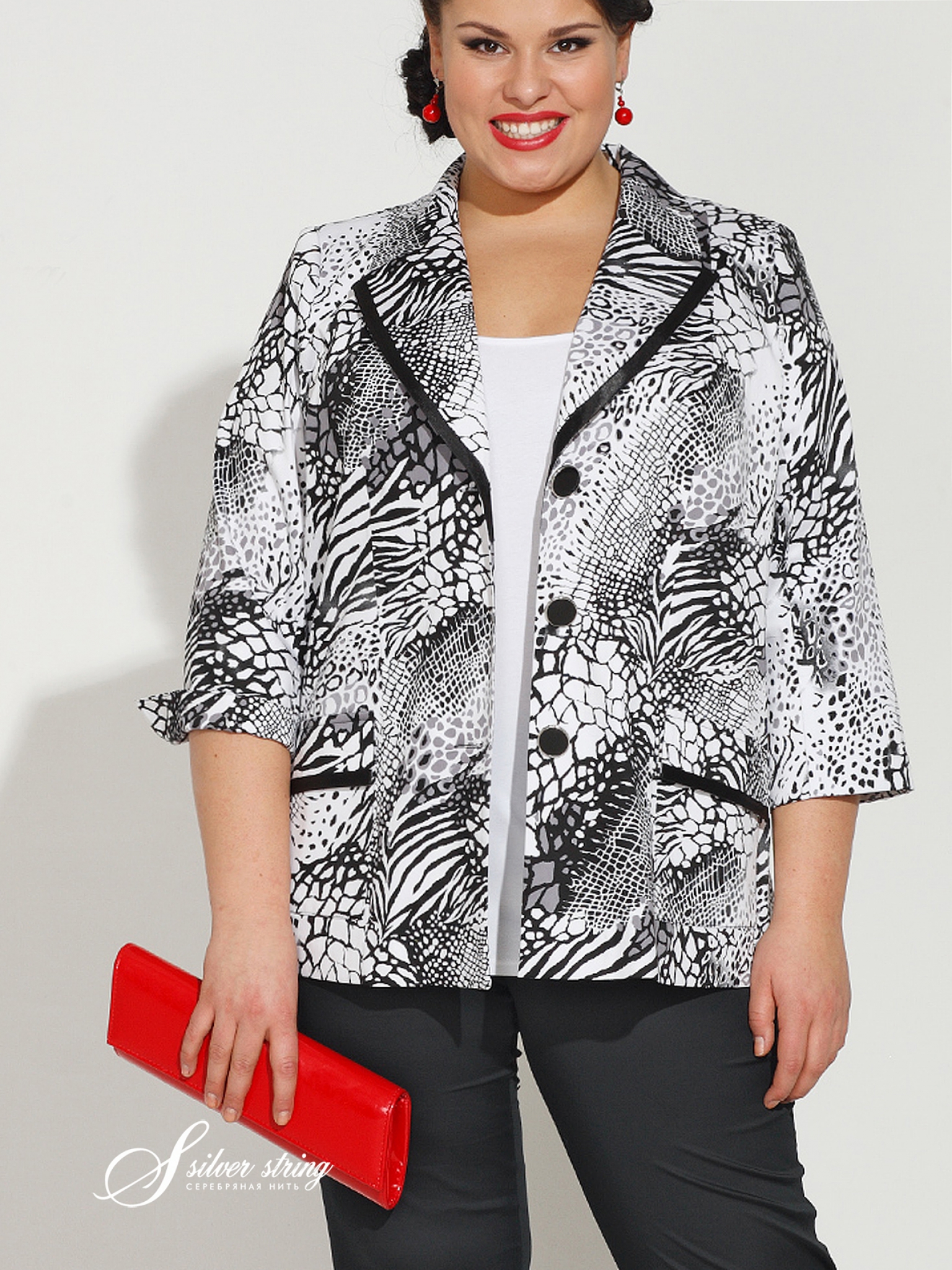 Жакет средней длины из плотной хлопковой ткани с великолепной посадкой и контрастной отделкой по краю воротника и лапанам накладных карманов. Современный втачной рукав 3/4 ,свободный крой. Застежка на 3 пуговицы. Эта вещь будет прекрасным дополнением к блузе или топу, юбке или брюкам. Создайте себе оригинальный комплект из нашей летней коллекции.