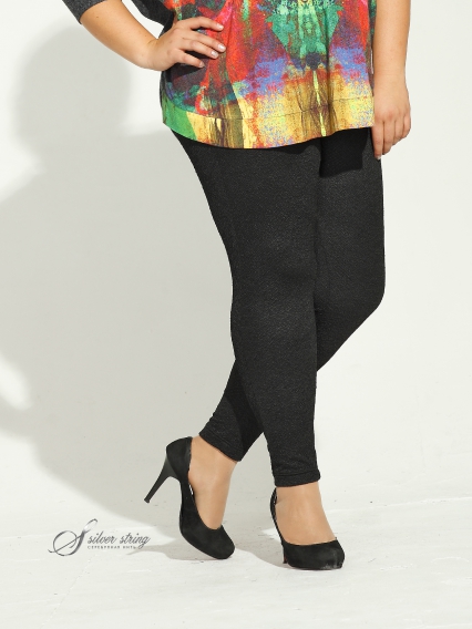 Брюки-легинсы из эластичного трикотажного полотна черного цвета длиной до щиколотки. Пояс на круговой резинке.