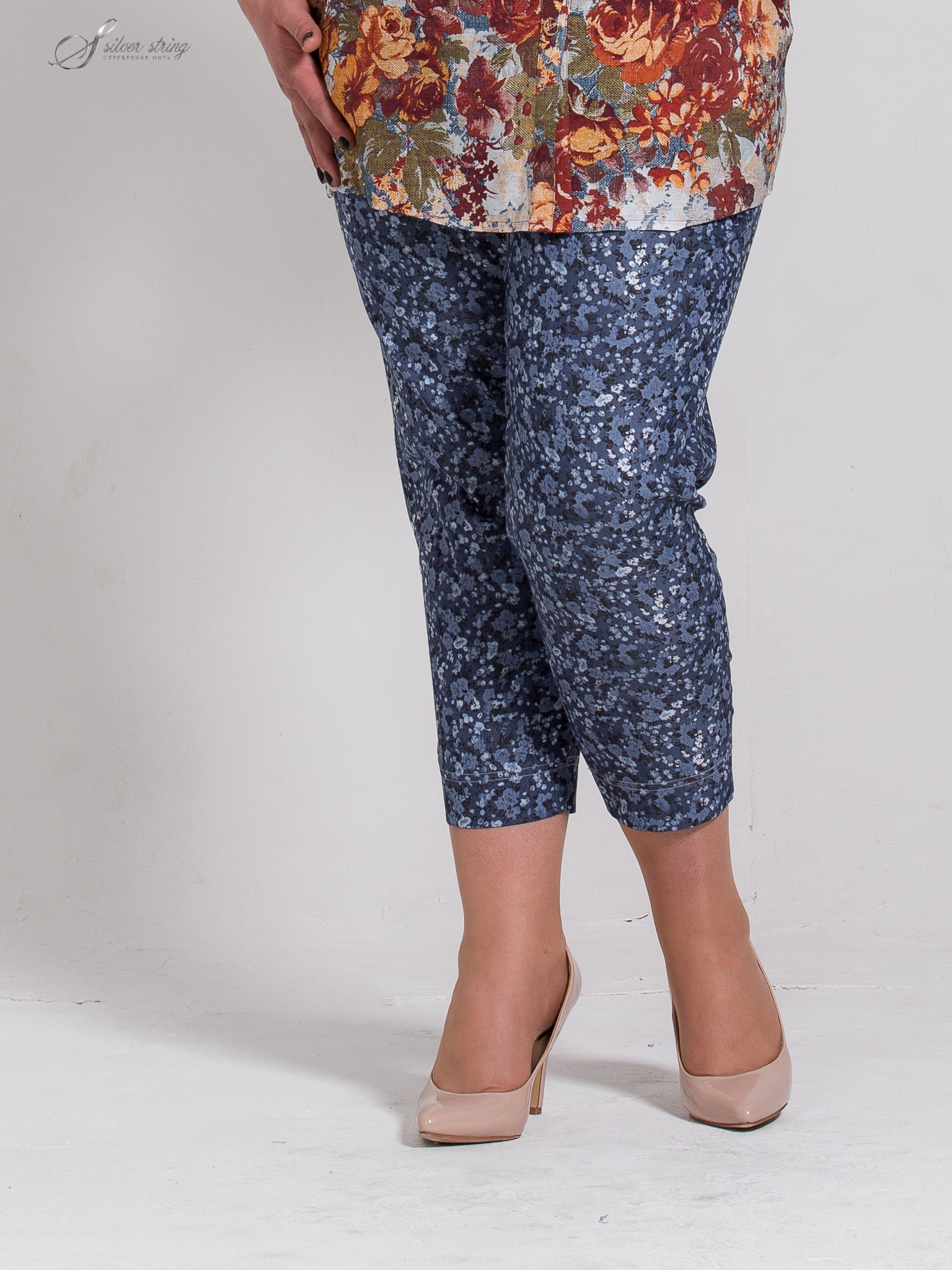 Брюки, длиной 7/8, с разрезами в боковых швах. На передних полотнищах обработаны карманы. Пояс по спинке с эластичной тесьмой