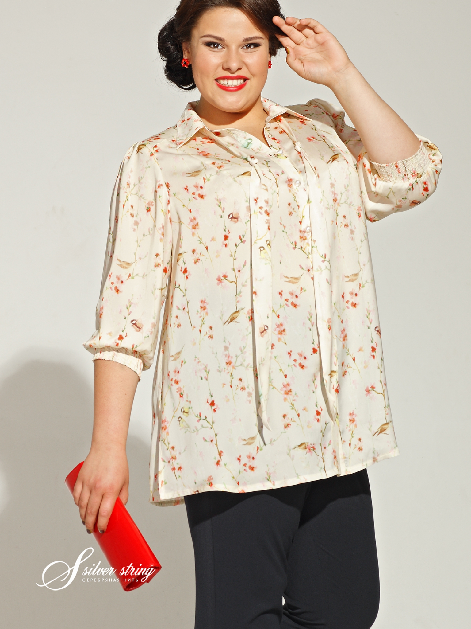 Шелковая блузка, длина изделия ниже линии бедра. Блузочный воротник, блузка украшена красивым галстуком, котрый можно завязывать в бант. Рукав ниже локтя, присобран на резинку, что дает легкость регулировать длину рукава.