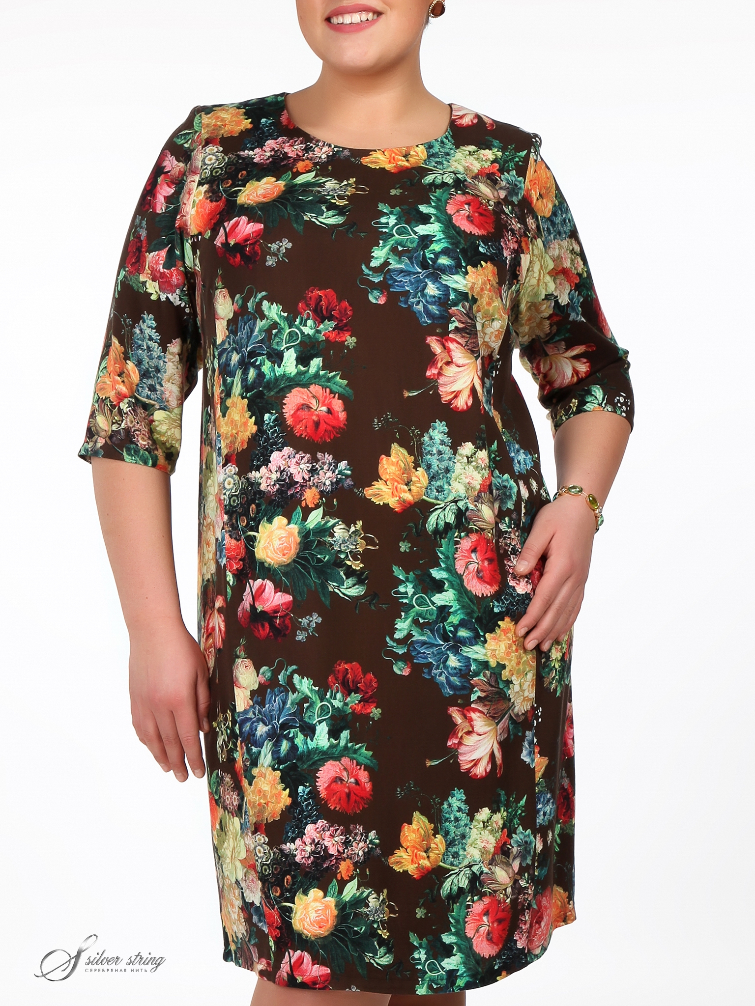 Платье прямого силуэта, с круглым вырезом. По низу рукава проложена резинка.