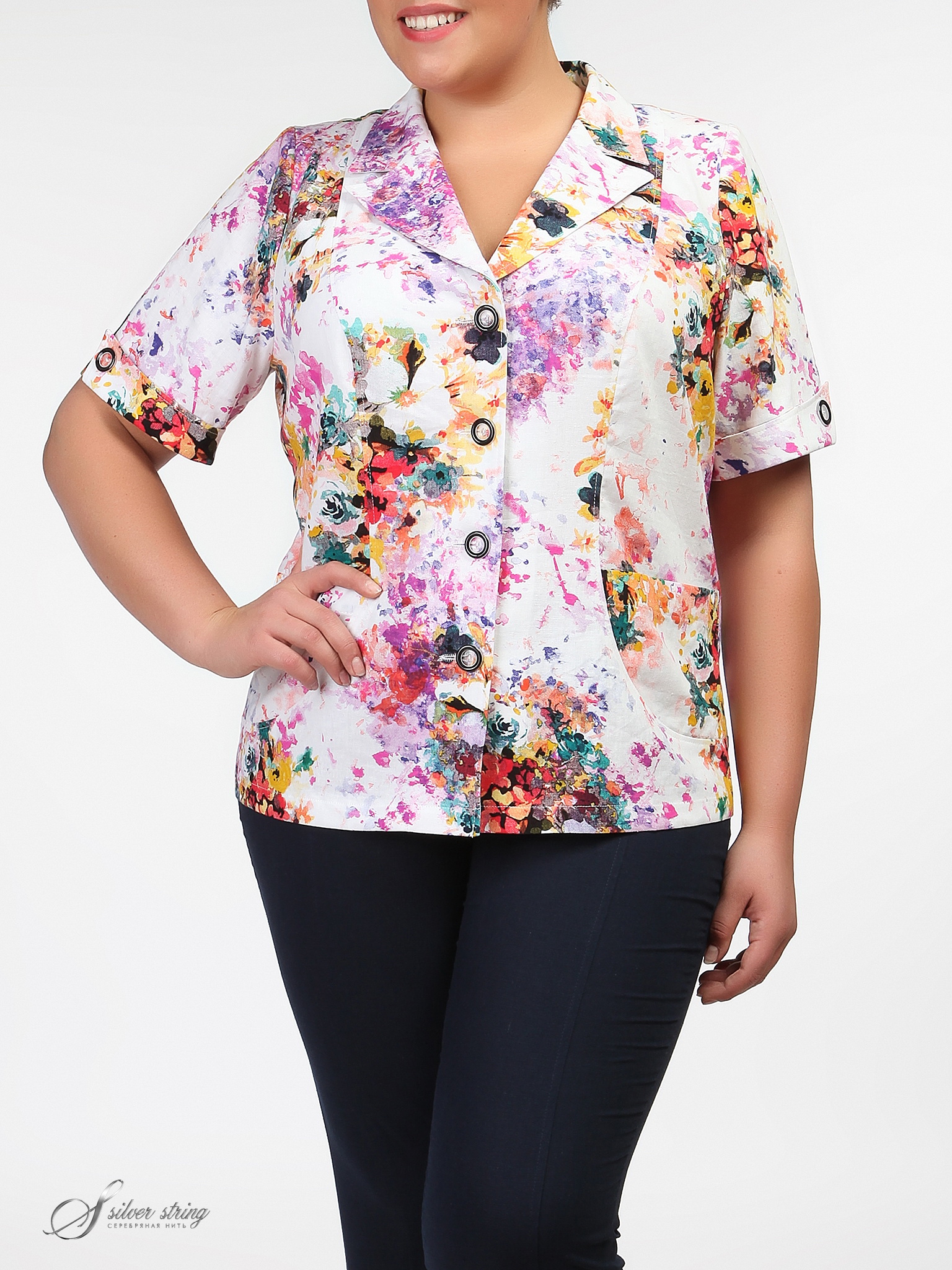Жакет полуприлегающего силуэта с английским воротником. Рукав втачной с фигурным отворотом.