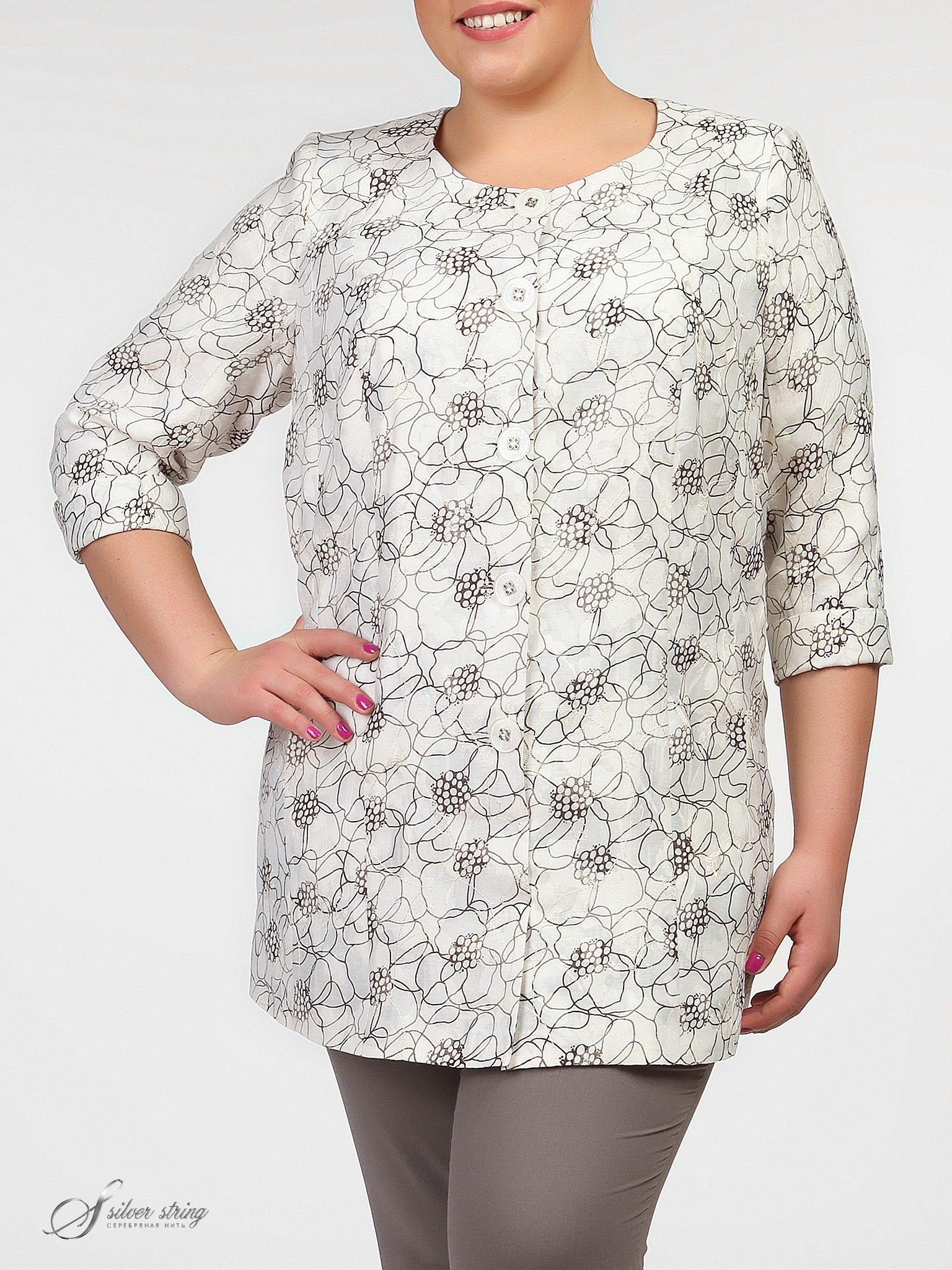 Жакет прямого силуэта, на притачной подкладке, с рукавом, длиной 3/4. Горловина круглой формы, по борту застежка на пуговицы. В рельефах полочки обработаны карманы.