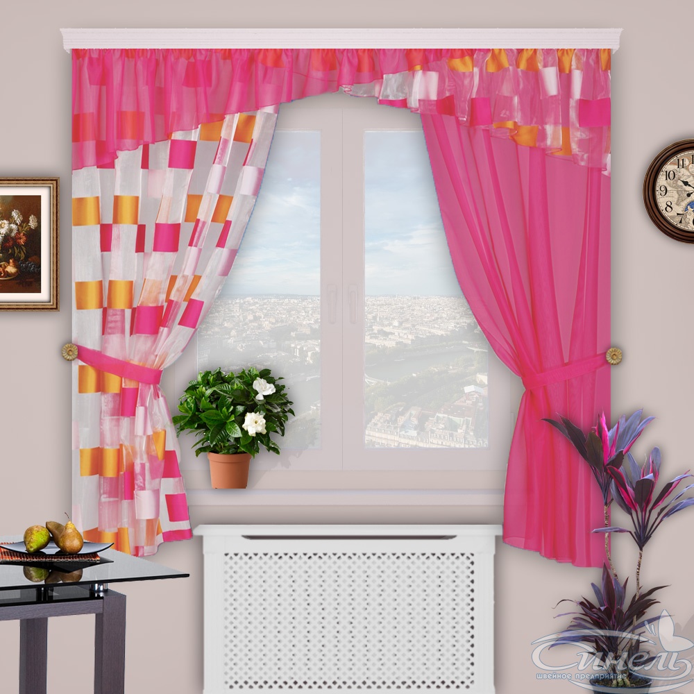 Открытая ассиметричная модель удачно сочетает однотонную ткань и ткань с рисунком. Сверху пришита драпировочная лента с петлями для крючков.Учитывая размеры будет удачно смотреться на карнизе от 1,5 до 3,0 метров. Рекомендуется вывешивать на двухрядный карниз любого типа.