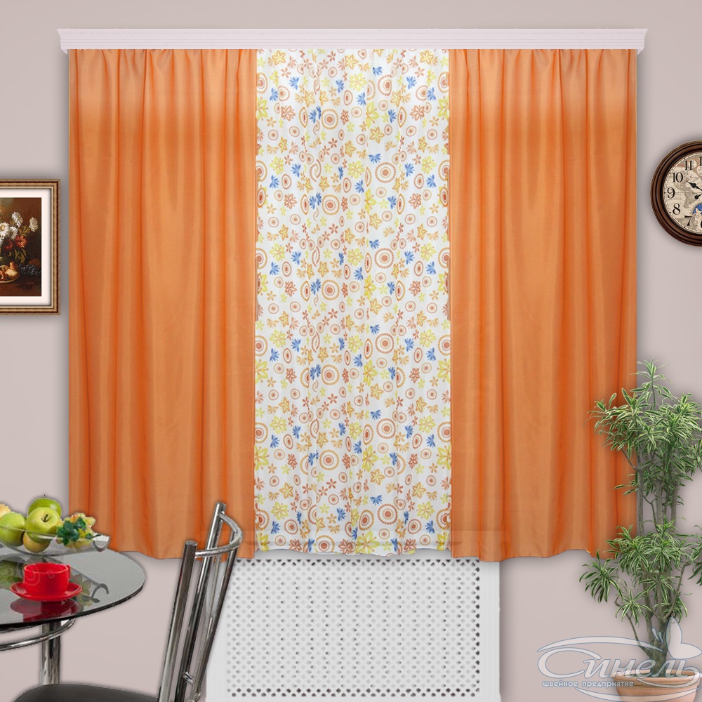 Простой и очень практичный комплект штор из лёгкой вуали , который подойдёт как для кухни так и для детской или комнаты подростка.Вывешивается на один или два ряда.Сверху пришита драпировочная лента с петлями для крючков.Подойдёт для любого вида карниза от 1,5 до 3,0м .