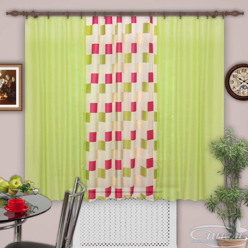 Простой и очень практичный комплект штор из лёгкой вуали , который подойдёт как для кухни так и для детской или комнаты подростка.Вывешивается на один или два ряда.Сверху пришита драпировочная лента с петлями для крючков.Подойдёт для любого вида карниза от 1,5 до 3,0м .
