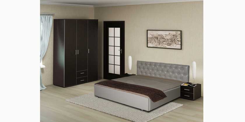 кровать Lora (с каретной стяжкой, кристалами или пуговицами) с П.Мех.