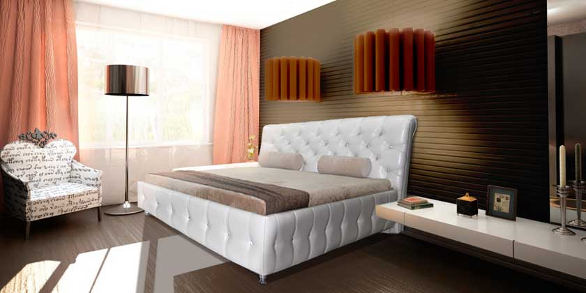 кровать Stella (с каретной стяжкой, кристалами или пуговицами) c П.Мех.