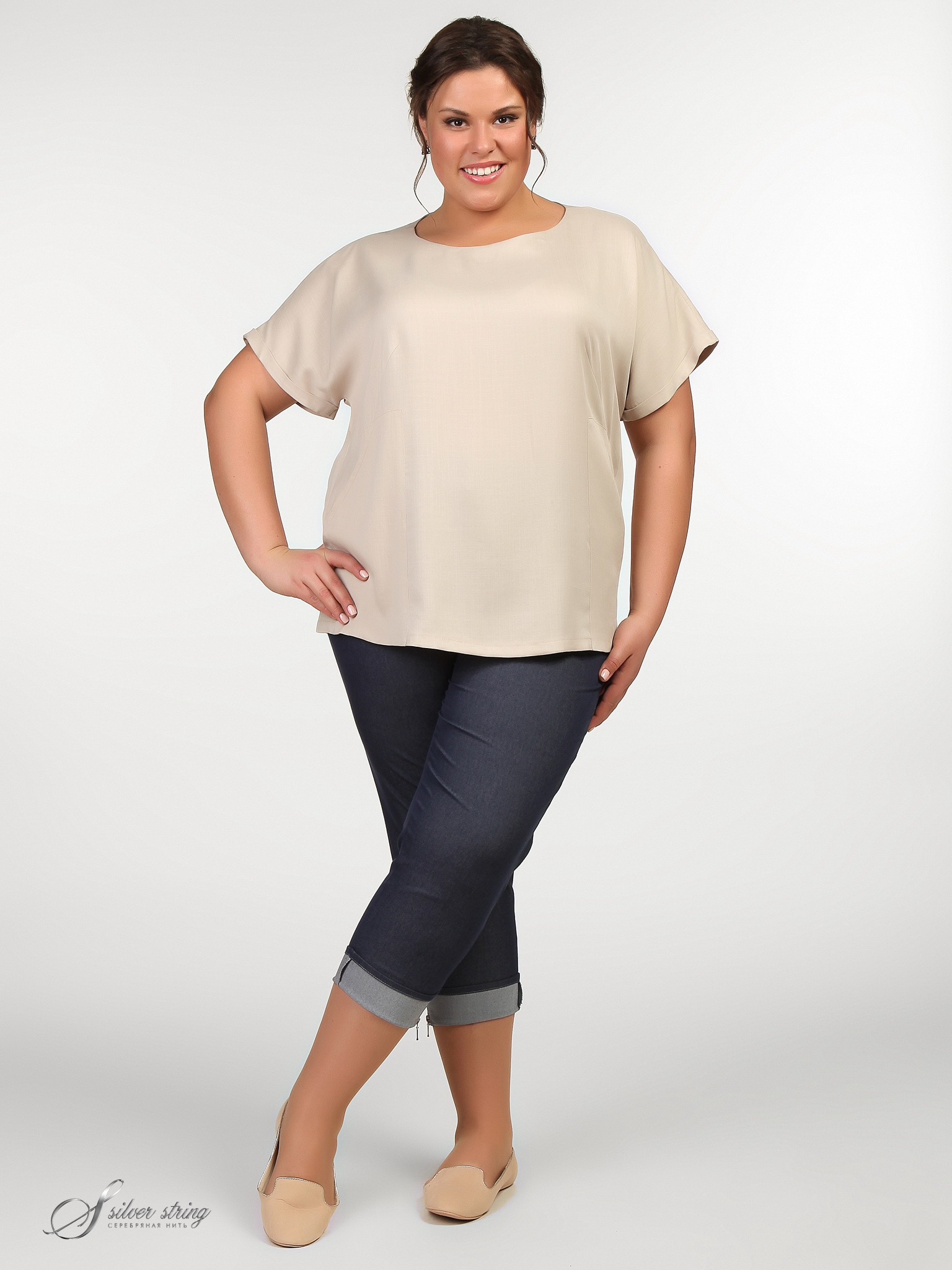 Летняя блуза прямого силуэта, с цельнокроеным коротким рукавом. Изделие выполнено из легкой ткани с высоким содержанием хлопка. Крупные накладные карманы и вырез горловины "лодочкой" делают модель современной.