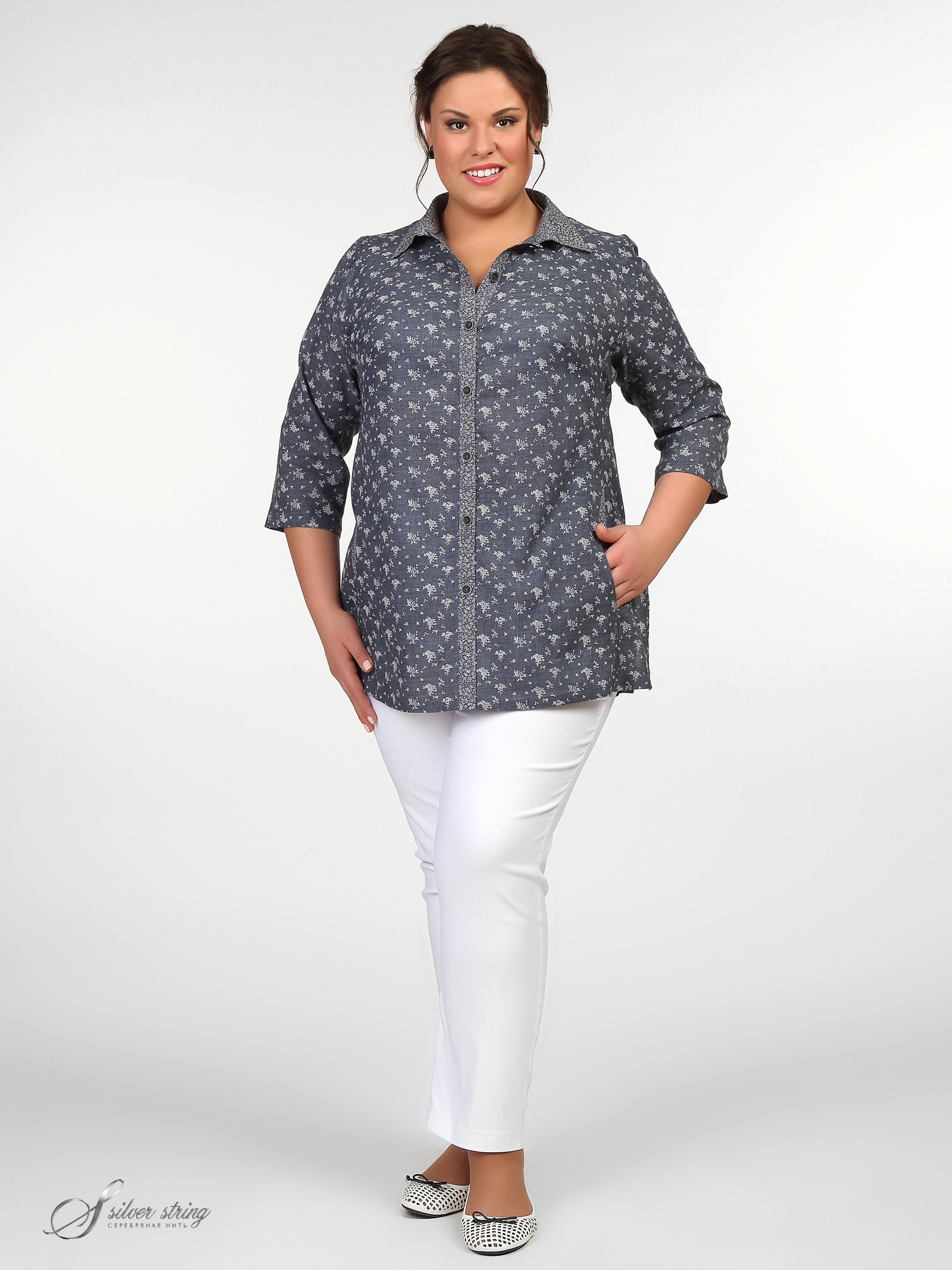 Рубашка летняя. Ткань тонкий хлопок. Сочетание нескольких дизайнов ткани. Рукав 3/4. Воротник спортивный. Застежка на петли и пуговицы. Карманы в швах.