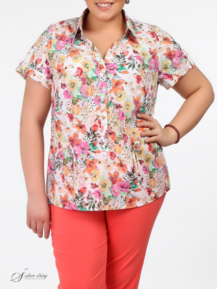 Блуза прямого силуэта с кулисой и застежкой-поло. Воротник рубашечный на стойке.