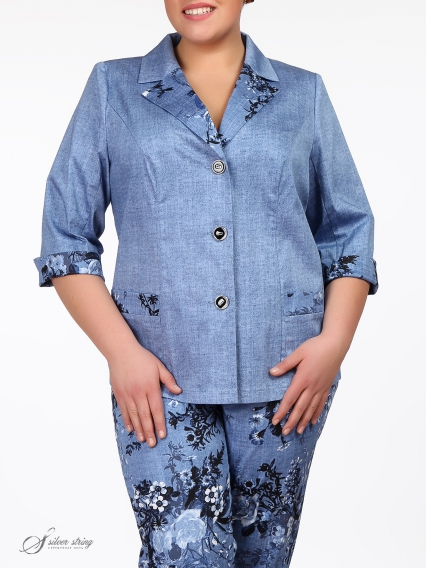 Жакетполуприлегающего силуэта с английским воротником. Рукав втачной, длиной 3/4. Изделие выполнено из тканей-компаньонов.