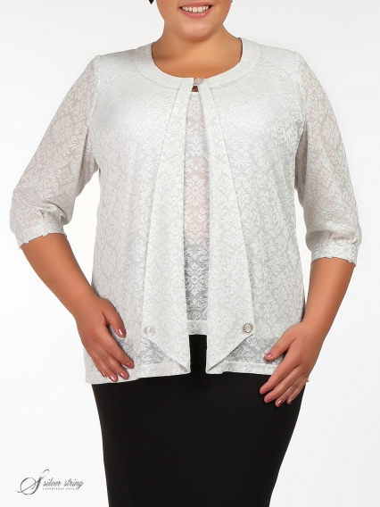 Блузка с топом прямого силуэта. Рукав втачной, длина 3/4. Горловина круглой формы. Застежка в виде петли и пуговицы в области горловины.