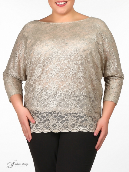 Нарядная блуза силуэта "Летучая мышь" изготовлена из мягкого кружева. Изделие полностью обработано на подкладке телесного цвета. Рукав длиной 3/4. Линия горловины выполнена в форме "лодочка".