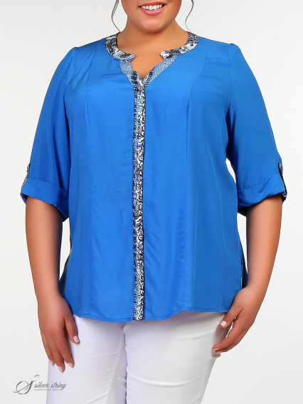Легкая блуза из ярких высококачественных вискозных тканей-компаньонов. Прекрасный крой, эффектное использование цветов - все это отвечает современным модным тенденциям. Модель прямого силуэта, с фигурной планкой по линии горловины из отделочной ткани. Легкая сборка по спинке, вдоль линии кокетки, делает блузу удобной в эксплуатации. Рукав с отворотом длиной 3/4, подхвачен патой. Это простая, элегантная и, в то же время, универсальная модель.