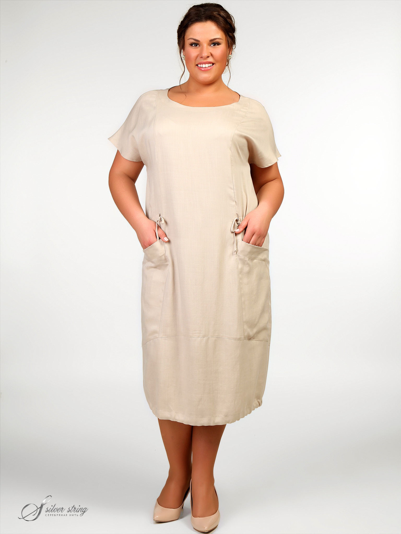 Платье прямого силуэта, с цельнокроеным коротким рукавом. На полочке обработаны рельефы, под углом уходящие в боковой шов. Небольшая кулиса со шнуром позволит регулировать прилегание модели в области талии. Изделие выполнено из ткани с высоким содержанием хлопка. Актуальное звучание модели придают крупные накладные карманы и вырез горловины "лодочкой".