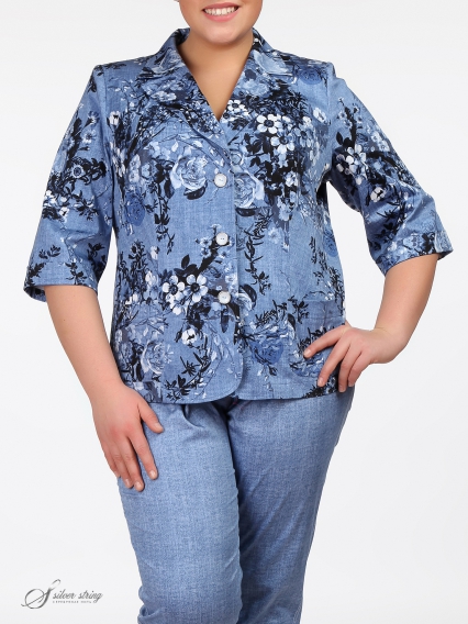 Укороченный жакет, полуприлегающего силуэта с английским воротником. Рукав втачной, длиной 3/4, с отворотом.