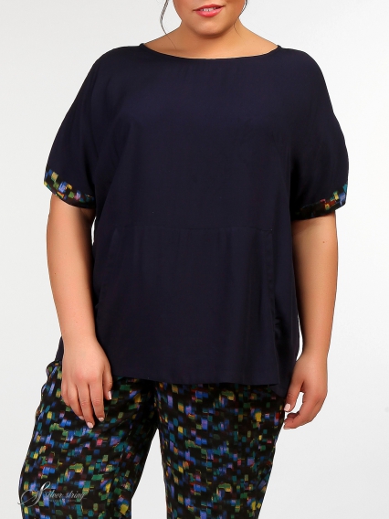 Летняя блуза прямого силуэта, с цельнокроеным коротким рукавом. Модель выполнена в современном стиле smart-casual. Блуза из легкой ткани с высоким содержанием хлопка. Обращают на себя внимание модные детали: крупный накладной карман-кенгуру и вырез горловины "лодочкой" . Это простая, элегантная и, в то же время, универсальная модель, подходящая для разных случаев жизни.