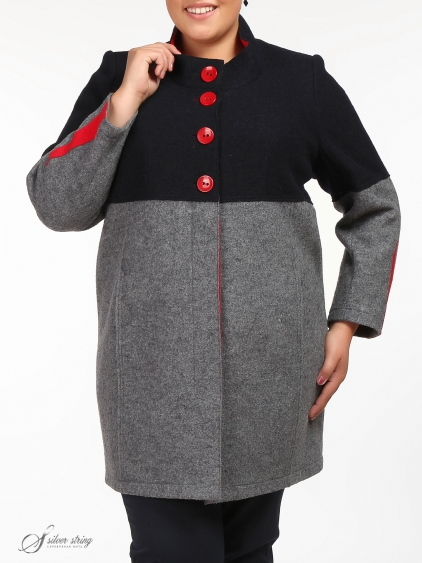 Пальто прямого силуэта. Воротник стойка. Застежка частично на петли и пуговицы, частично супатная. Рукав длинный, втачной. Карман обработан в шве.
