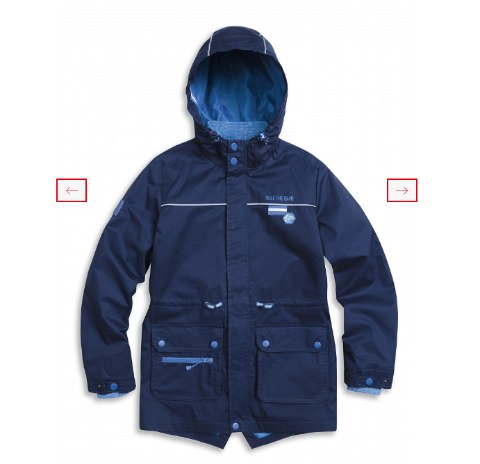 Парка из ткани с водоотталкивающей пропиткой. Светоотражающие канты и декоративная тесьма по капюшону. В рукавах имеются внутренние манжеты из трикотажной резинке, которые препятствуют задуванию ветра. Регулировка по талии за счет хлопчатобумажного шнура. По переду накладные карманы с декором в виде молнии.