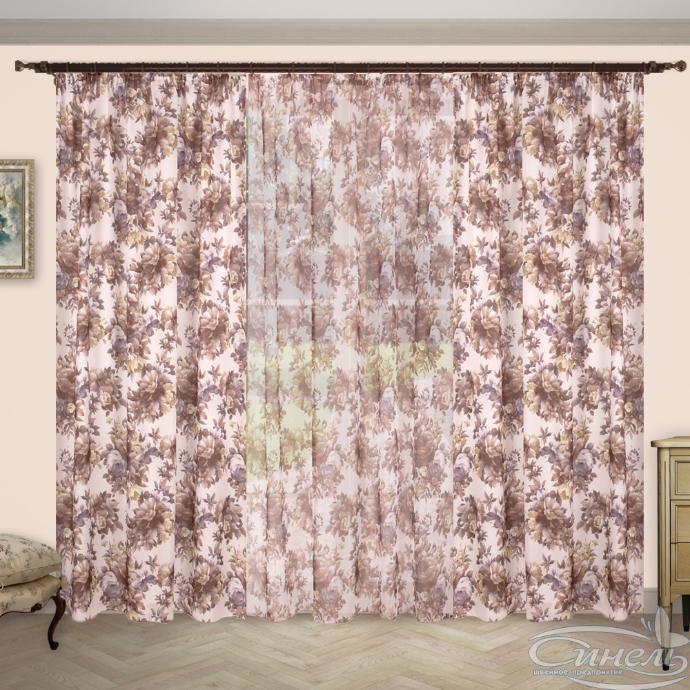 Этот универсальный комплект штор из тканей -компаньонов,в зависимости от расцветки подойдёт для любой комнаты и любого интерьера. Рекомендуется на двухрядный карниз от 2 м до 3,5м.