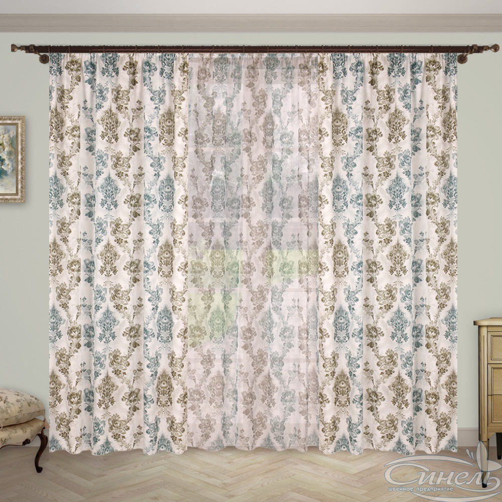 Этот универсальный комплект штор из тканей -компаньонов,в зависимости от расцветки подойдёт для любой комнаты и любого интерьера. Рекомендуется на двухрядный карниз от 2 м до 3,5м.