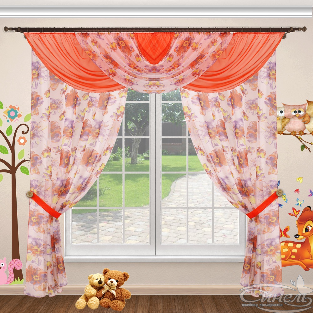 Нарядный и воздушный комплект украсит интерьер любой комнаты.Ламбрекен очень прост в эксплуатации(стягивается на драпировочной ленте). Вывешивается на один или два ряда.Сверху пришита драпировочная лента с петлями для крючков.Подойдёт для любого вида карниза от 1,5 до 3,0м .