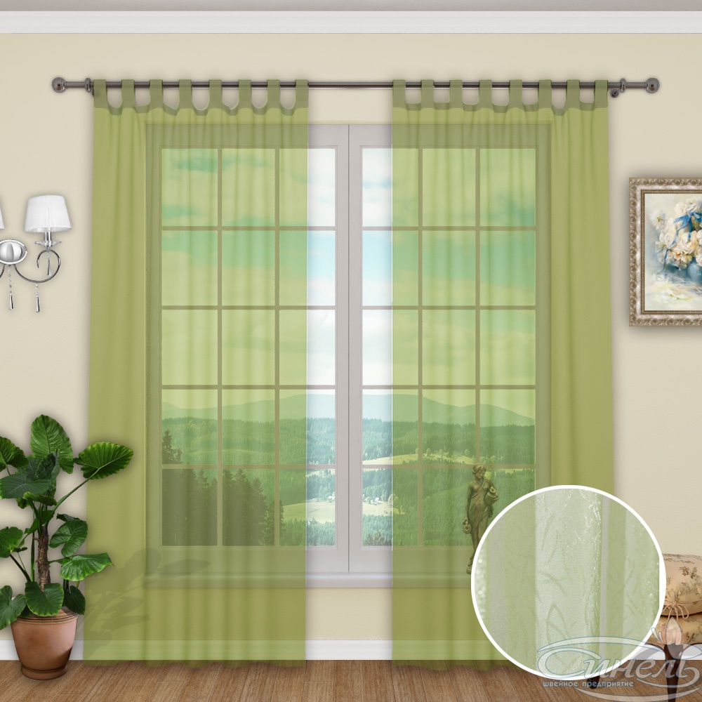 Комплект из двух штор из воздушной органзы.Подойдут только для карниза "палки" или струны.Высота от верха петли до низа 3,0 метра ,ширина каждой шторы 1,8 метра.Можно дополнить комплектом из плотной ткани " Модерн".