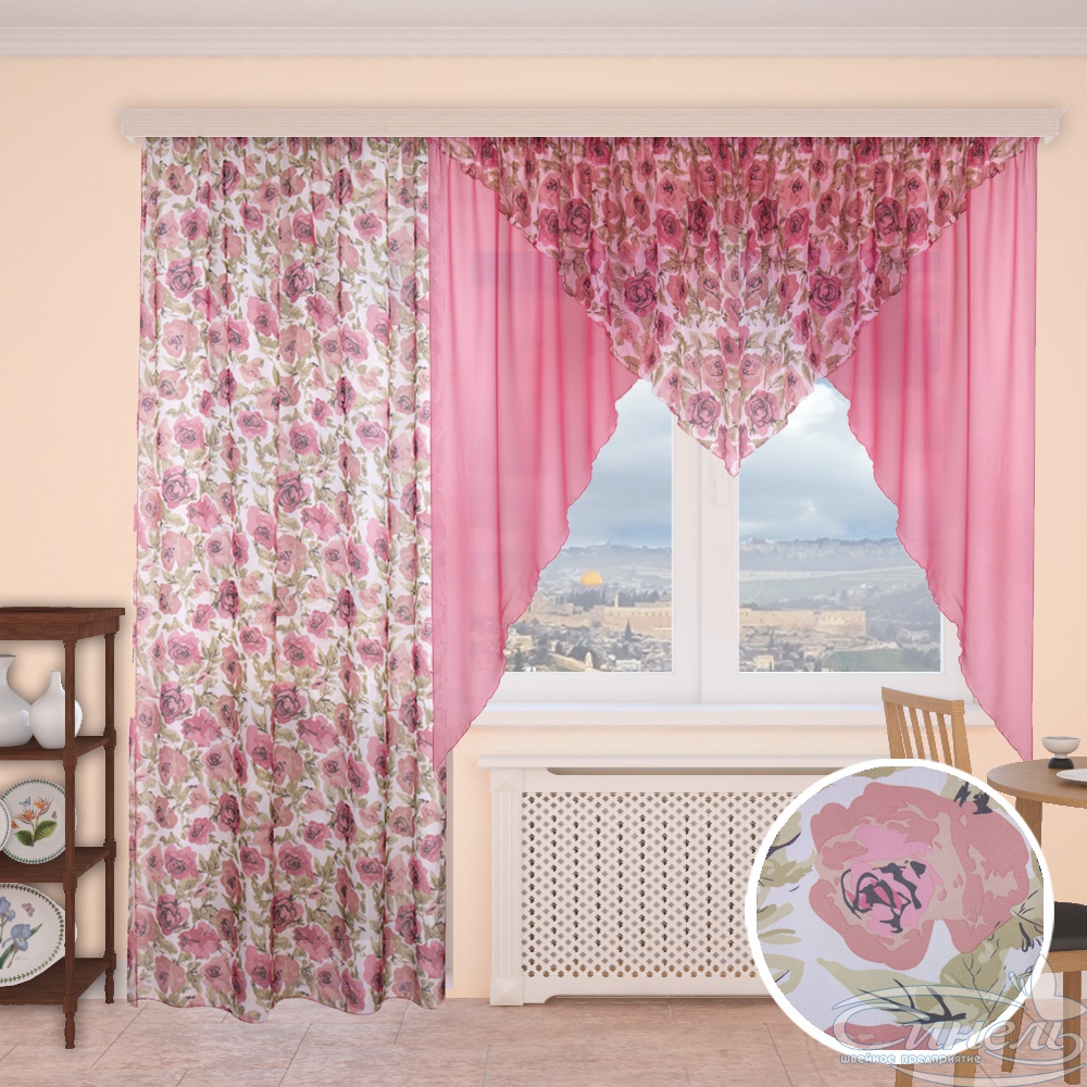 Нарядный комплект для окна с балконной дверью из воздушной вуали. Подойдёт для кухни и для комнаты. Состоит из двух штор. В короткой шторе" -Уголке" все элементы пришиты на одну ленту. Подойдёт на любой тип карниза от 2 до 4 метров.