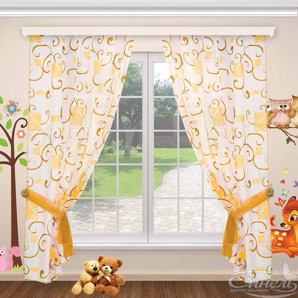 Комплект из 2 штор с красивыми подхватами- бантами. Прекрасно будет смотреться на окне в кухне,детской ,спальне и гостиной.Сверху пришита драпировочная лента с петлями для крючков.Подойдёт на любой тип карниза.