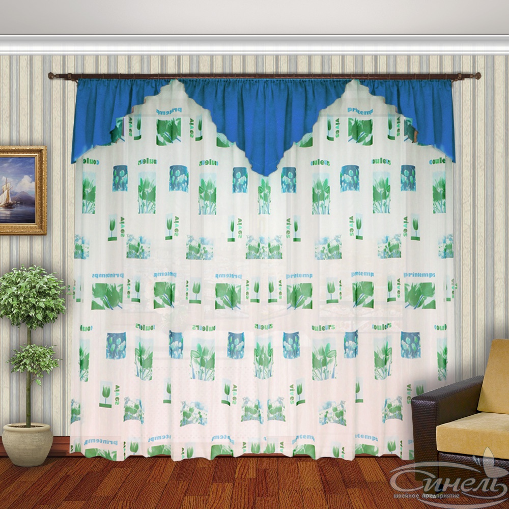 Очень нарядная модель .Пышный ламбрекен удачно сочетается с основной шторой и подчёркивает её расцветку. Рекомендуется на двухрядный карниз от 2,5 до 3,5 метров. Сверху на тюль и на ламбрекен пришита драпировочная лента с петлями для крючков.Подойдёт для всех видов карнизов.