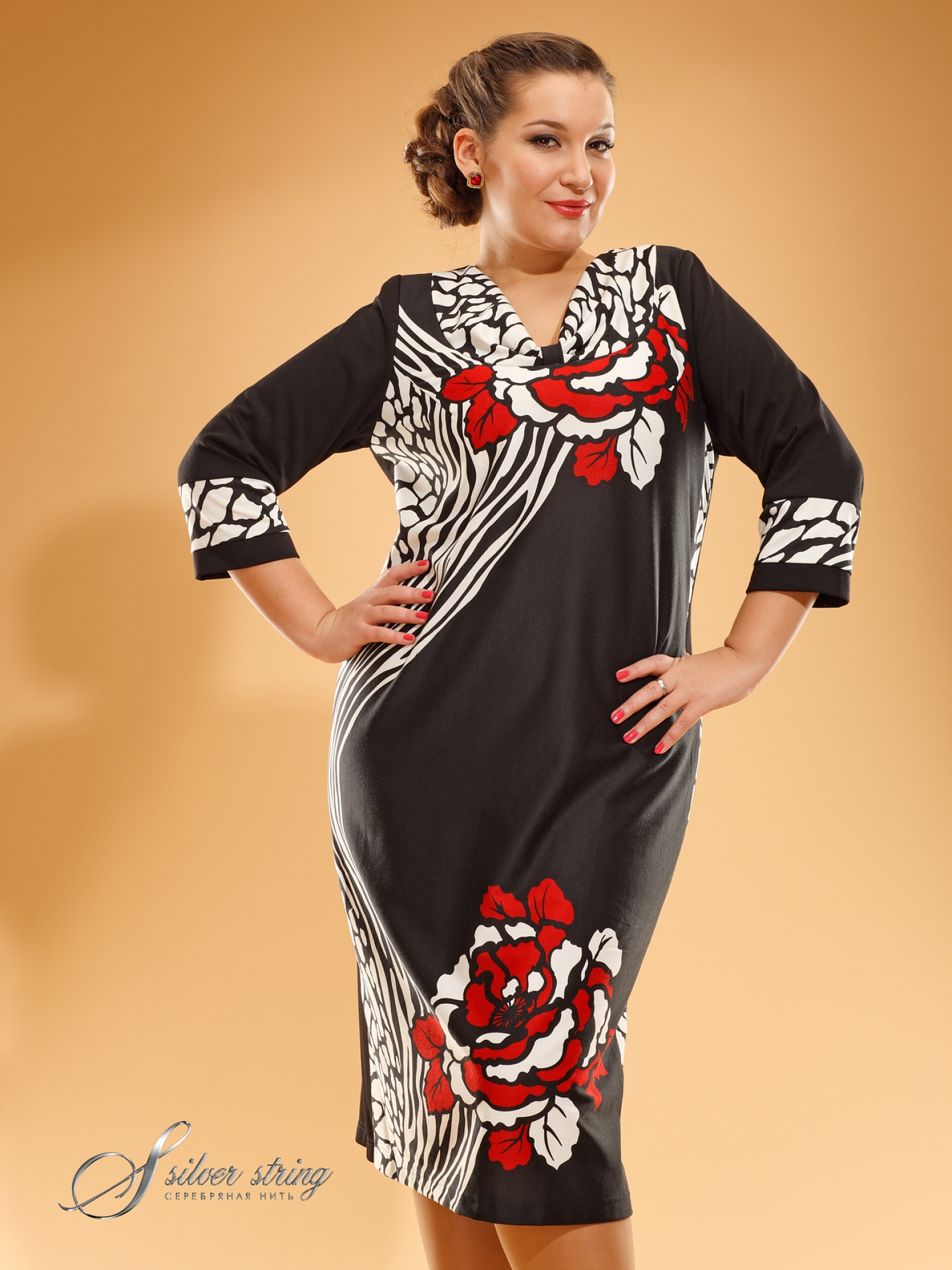Платье из джерси полуприлегающего силуэта. Рукав длиной 3/4. Оригинальный рисунок придает модели неординарность.