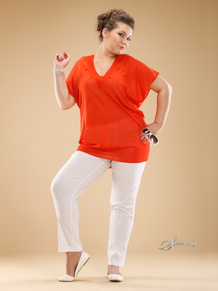Яркая блуза с У-образным вырезом на полочке и на спинке, что позволит носить её как самостоятельную вещь, так и комбинировать, создавая модную многослойность.