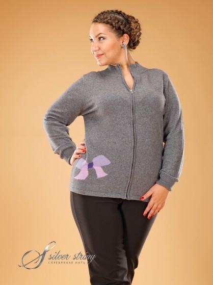 Укороченный джемпер из кашемировой смесовой пряжи с застежкой-молнией. Кокетливый рисунок по низу полочки смягчает спортивный стиль изделия.